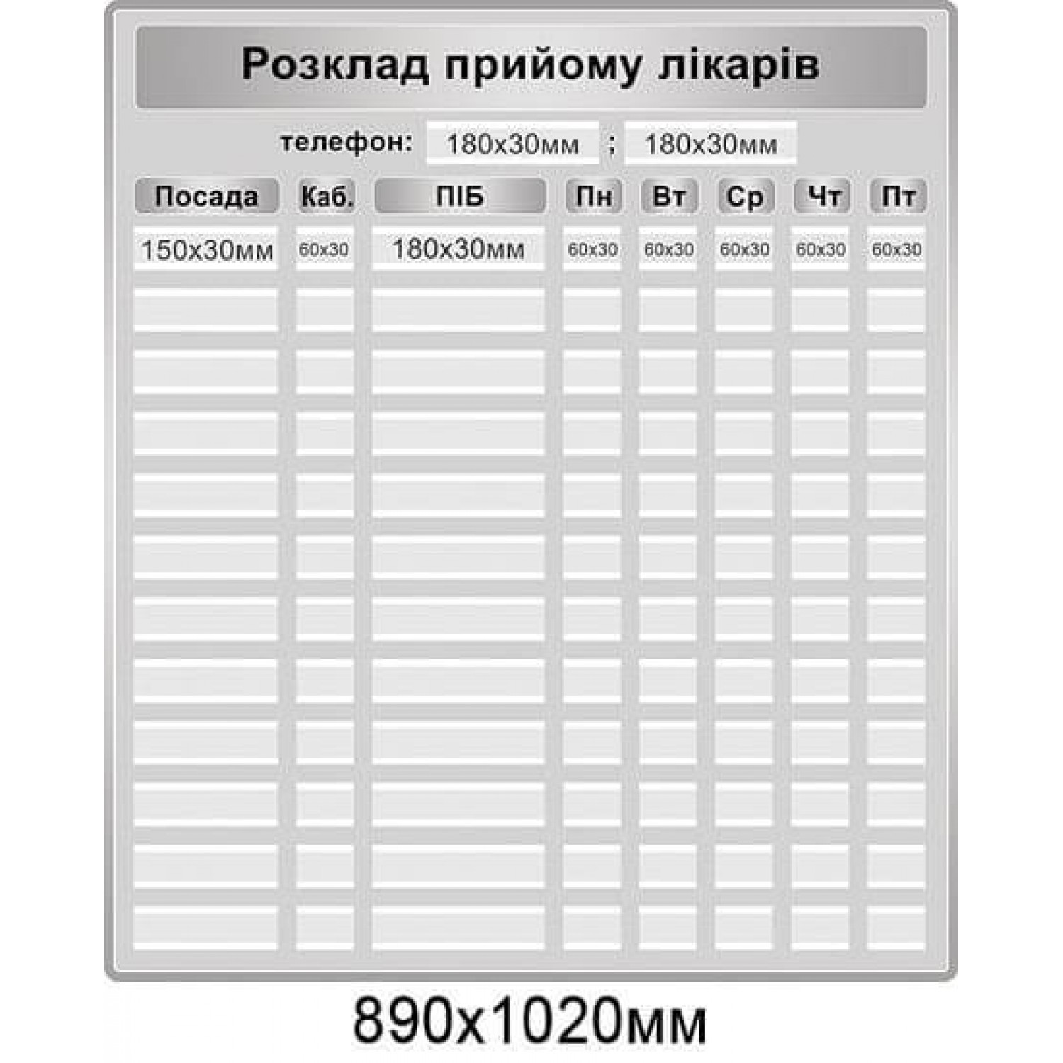 - Стенд "Расписание приёма врачей" с карманами для каждого столбца (серый фон)