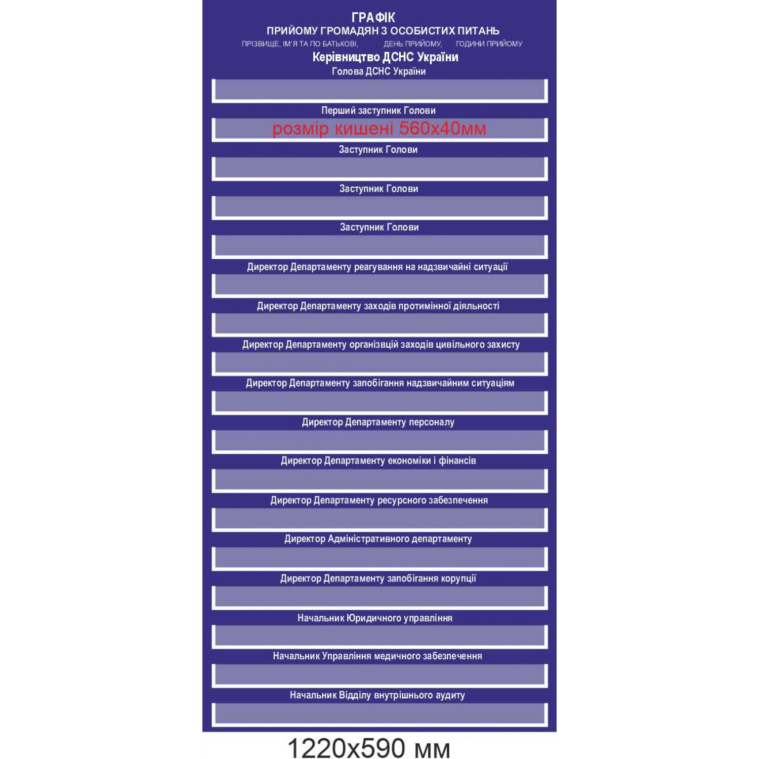 Описание Стенд с карманами График приема граждан ГСЧС