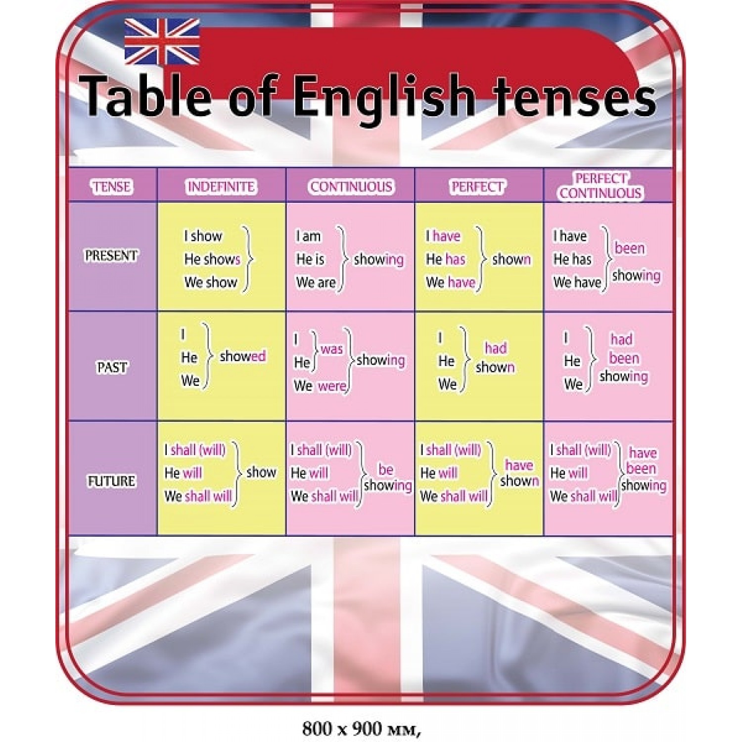Стенд "Таблица английских времён" (фон - флаг Великобритании)