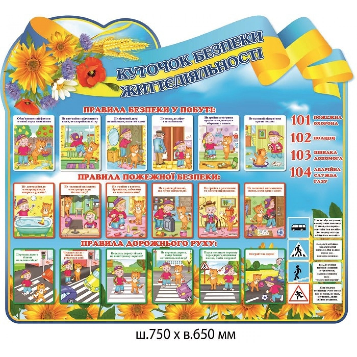 - Стенд Уголок безопасности в быту, на дороге и пожарная безопасность