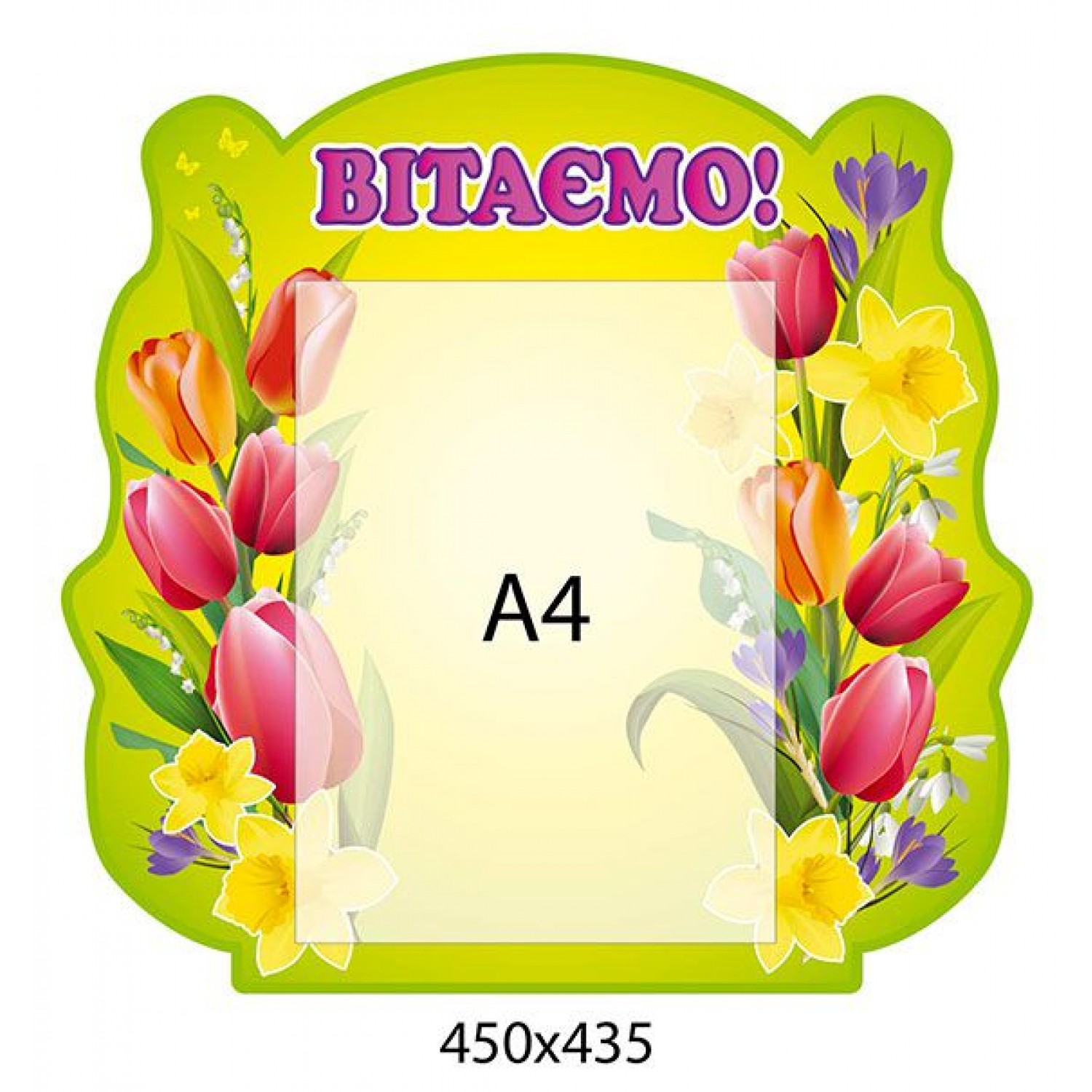 - Стенд Поздравляем Тюльпаны на желтом фоне