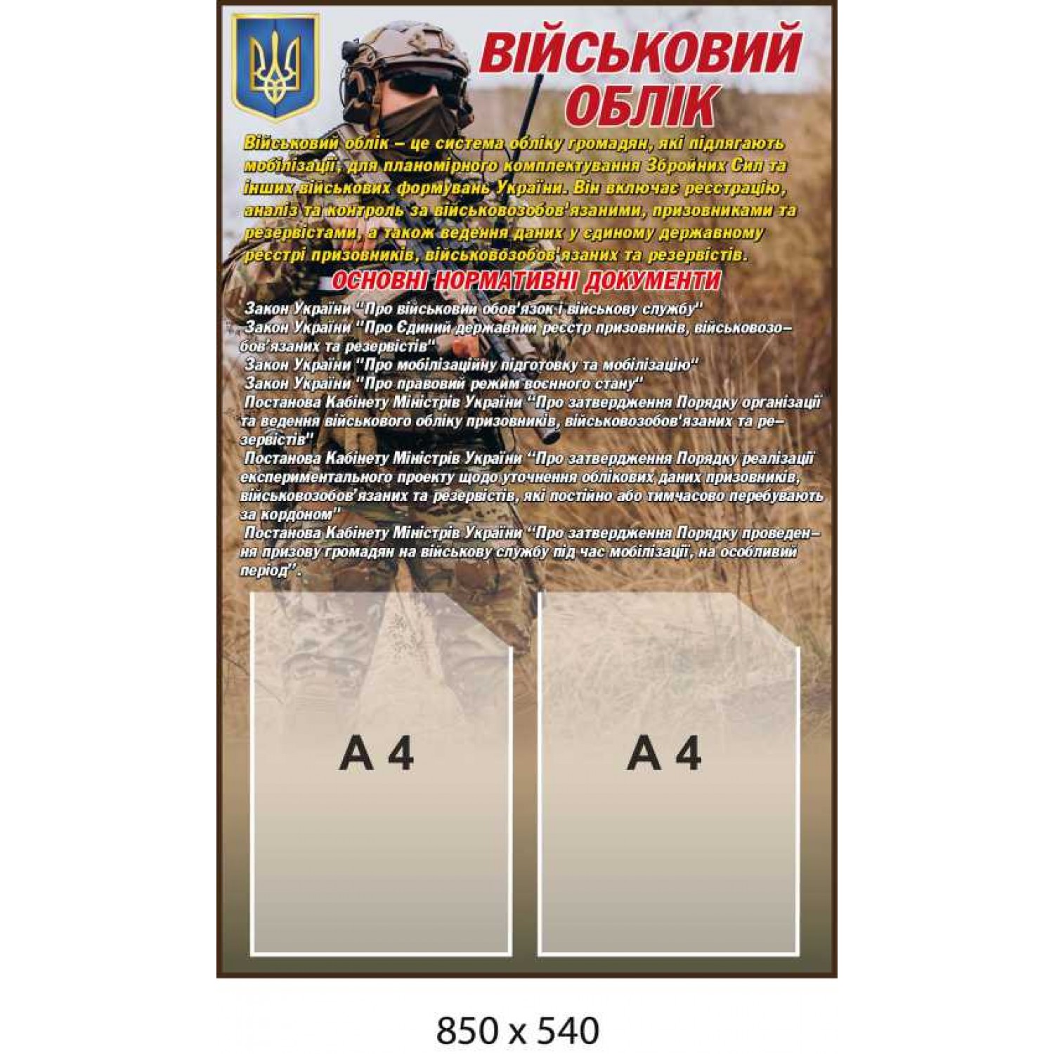- Стенд Воинский учет с карманами А4, армейский информационный уголок