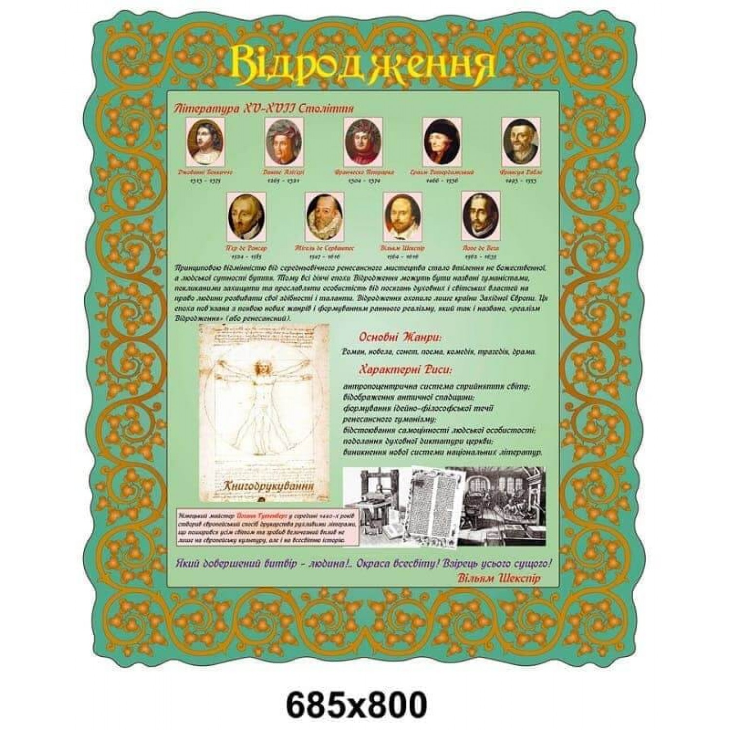 Стенд возрождение в кабинет зарубежной литературы