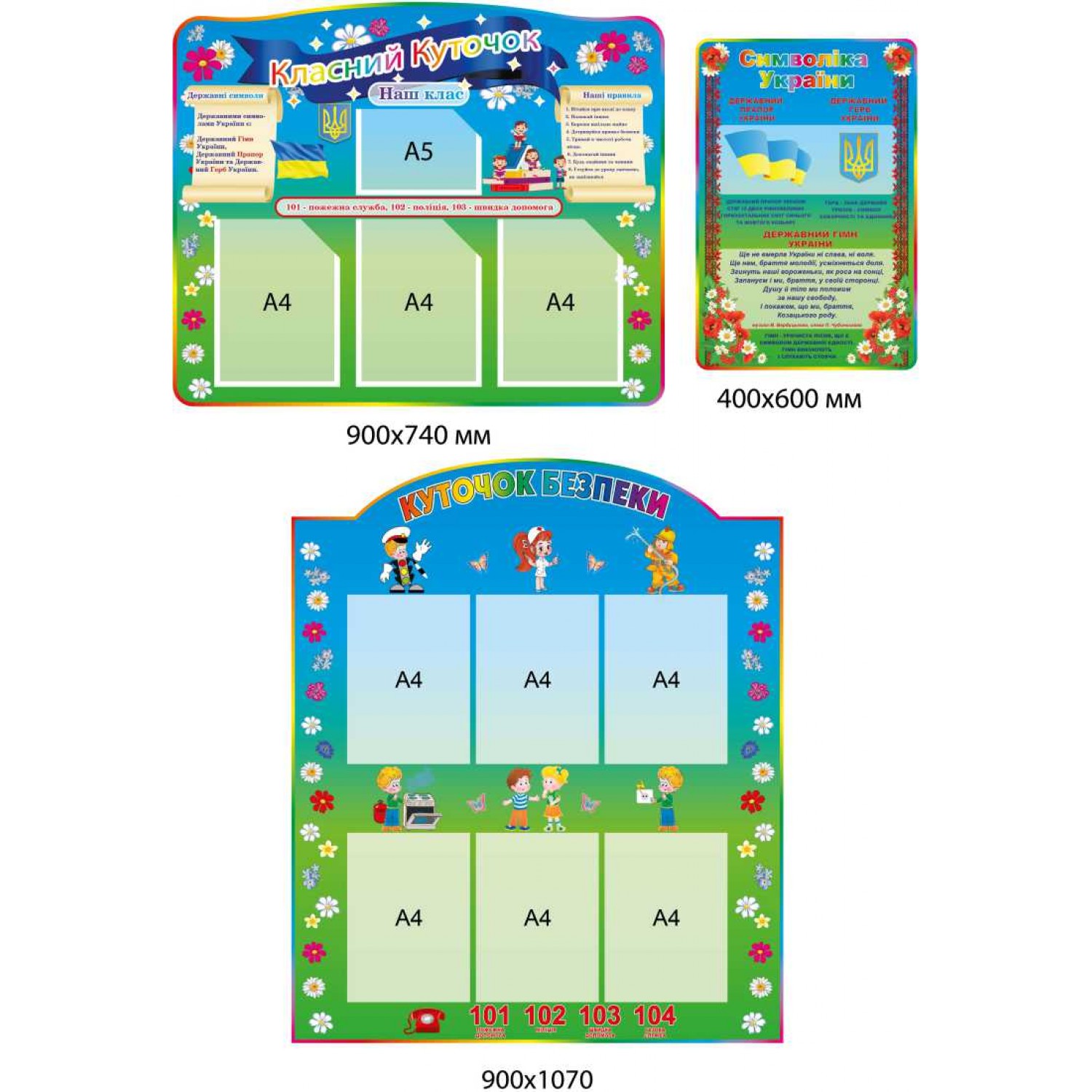 - Стенды (уголок безопасности, классный уголок, государственная символика) 3 штуки