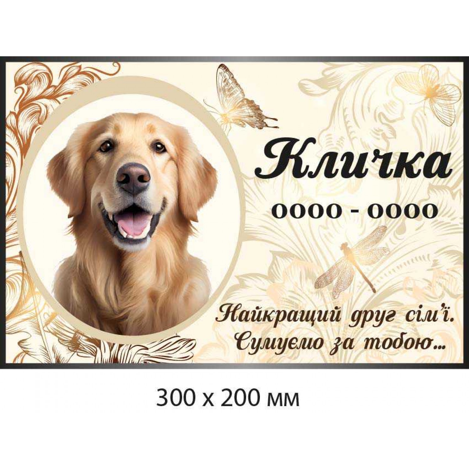- Табличка мемориальная для животных с фото (300х200 мм)