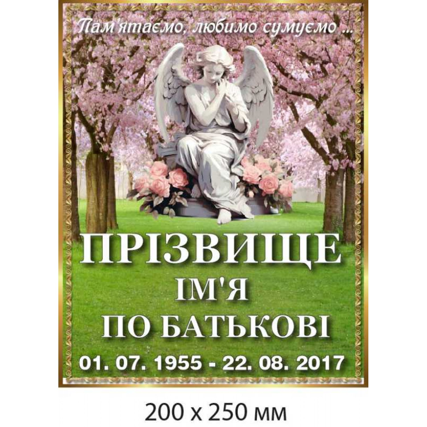- Табличка мемориальная "Помним, любим, скучаем" с ангелом (200х250 мм)