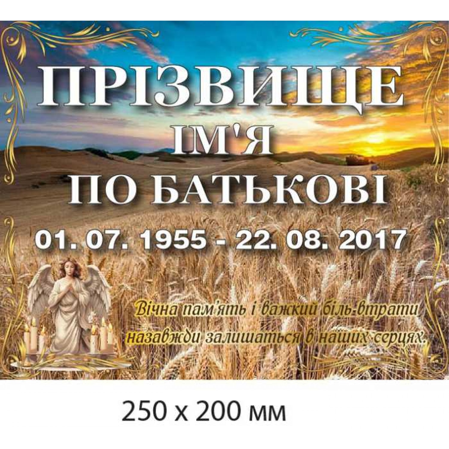 Описание Табличка ритуальная со скорбной фразой и степным пейзажем как фон (250х200 мм)