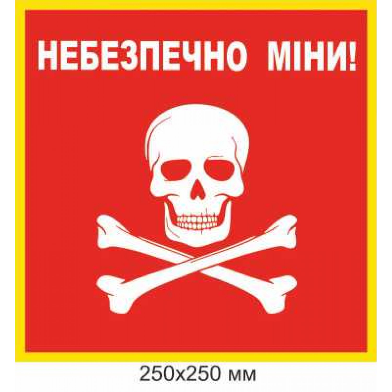 Табличка с предупреждением о минах красный квадрат 250 × 250 мм