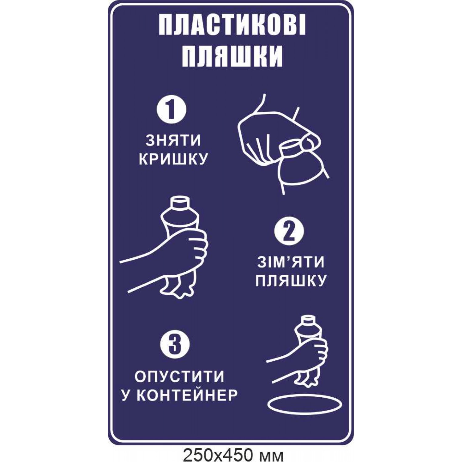 Табличка Сортировка мусора Инструкция как правильно выбрасывать пластиковые бутылки темно-синий фон