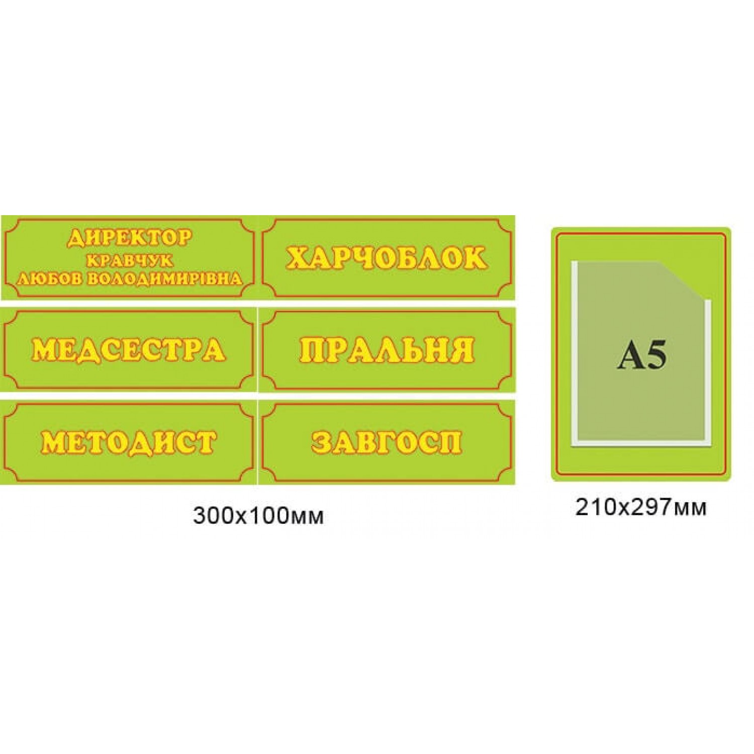- Таблички на двери салатовая Желтый шрифт
