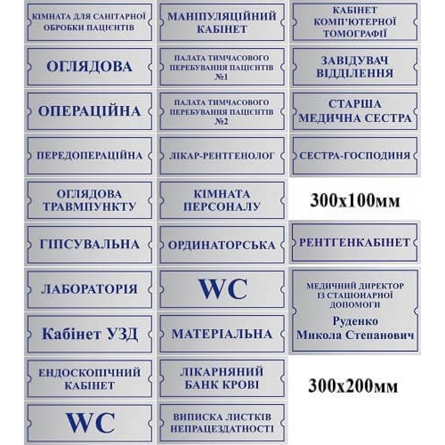 Таблички серого цвета для медицинских учреждений