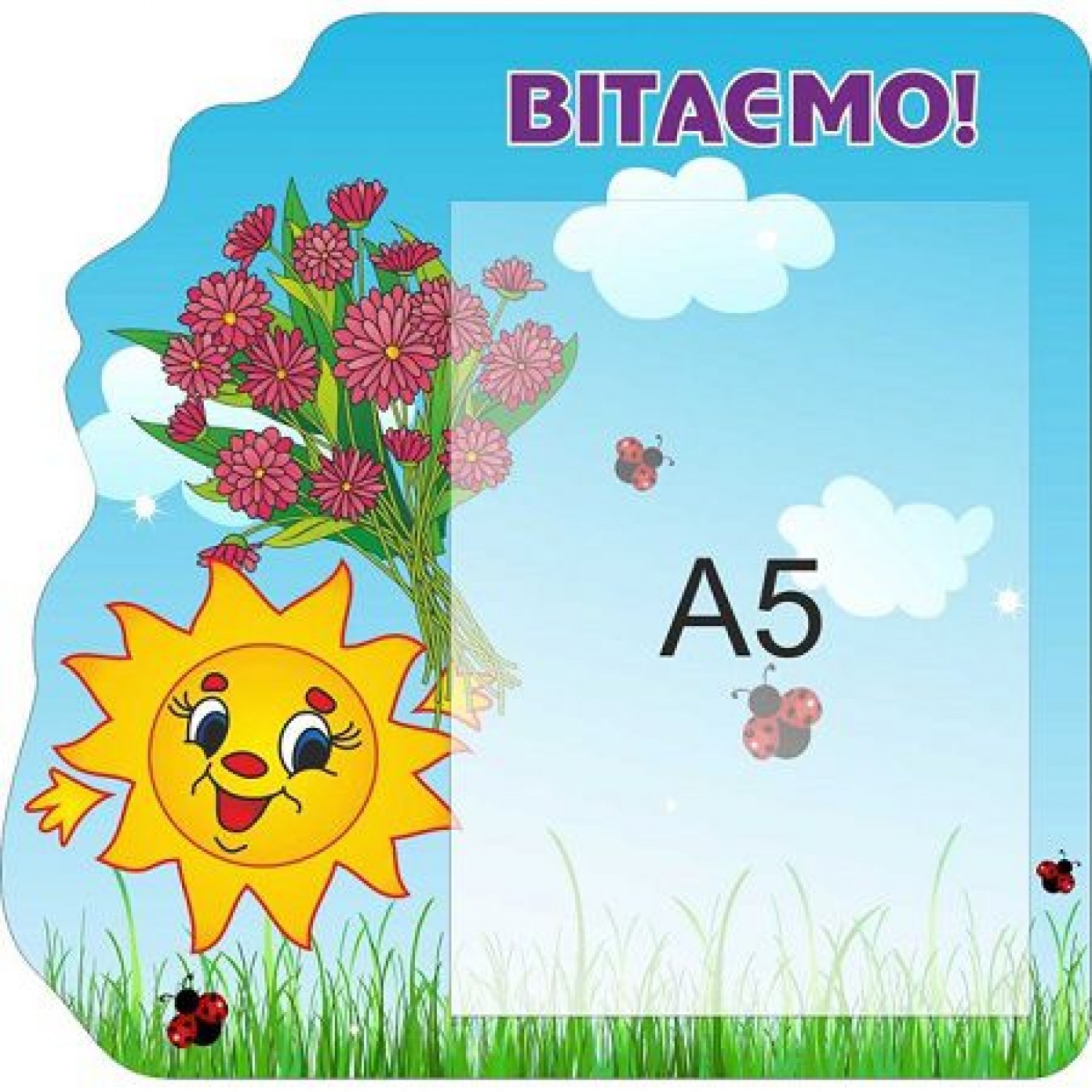 Опис Стенд Вітаємо Сонечко на синьому фоні