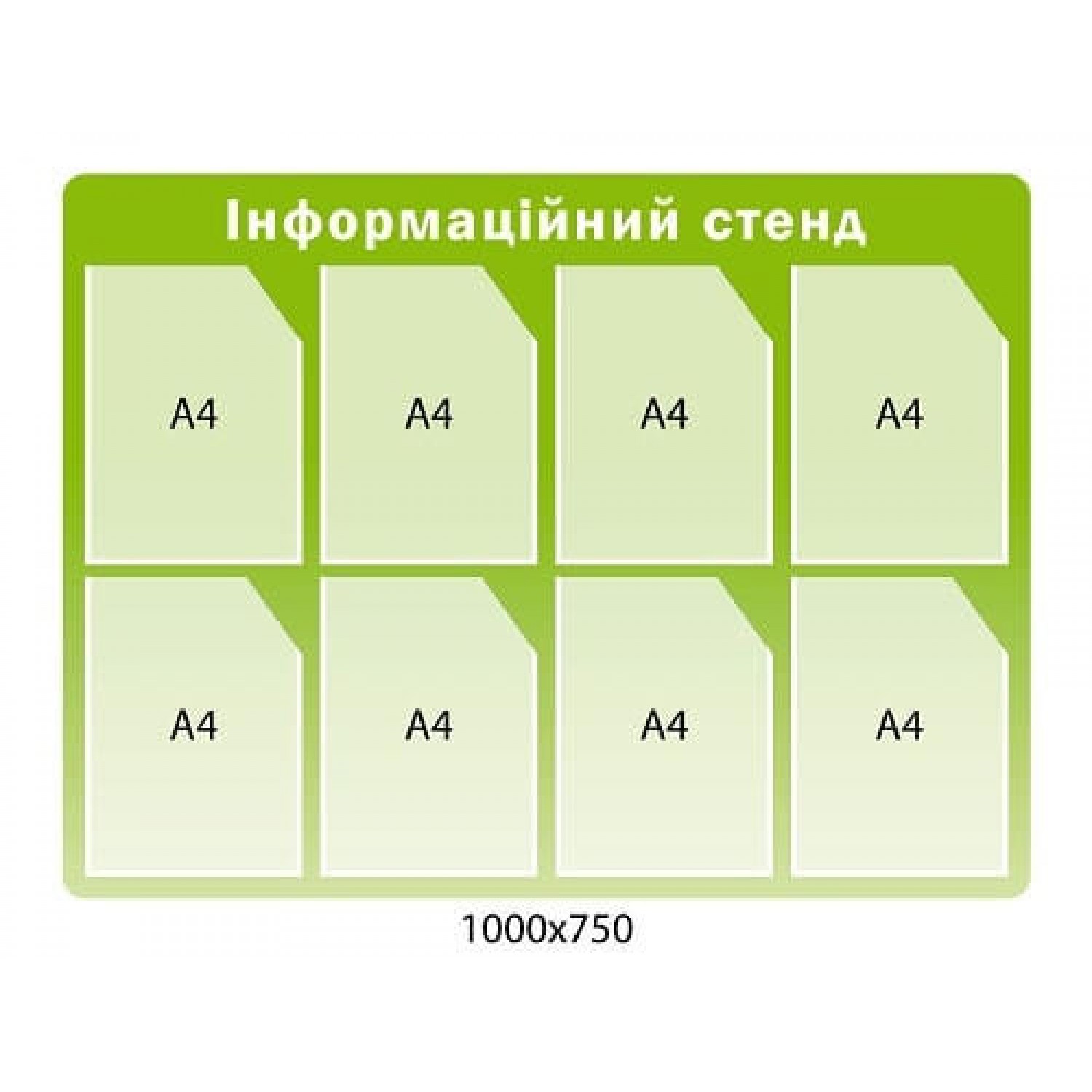 - Інформаційний стенд біло-салатовий на 8 кишень А4