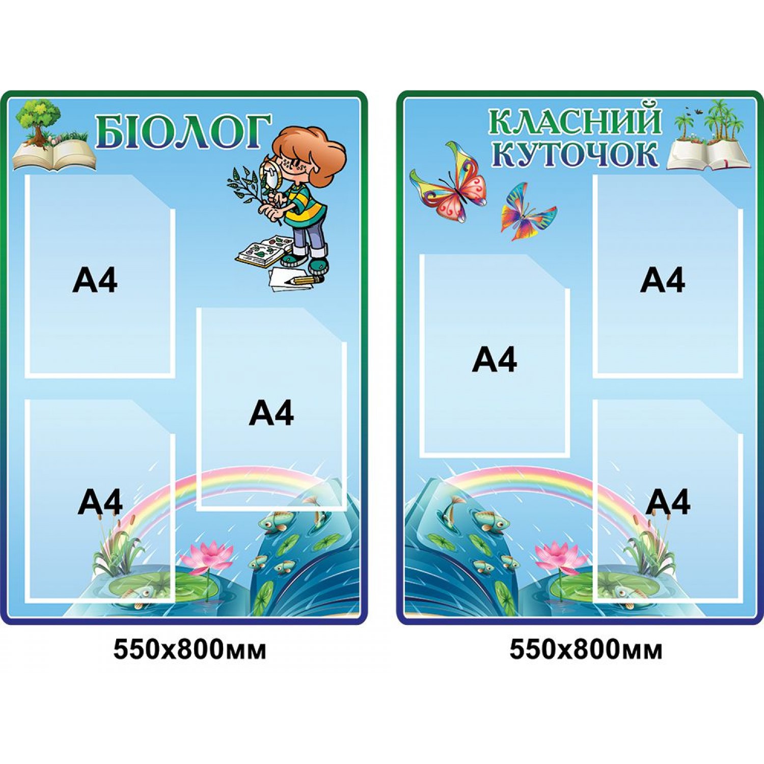 - Комплект стендів Біолог, Класний куточок (блакитний)