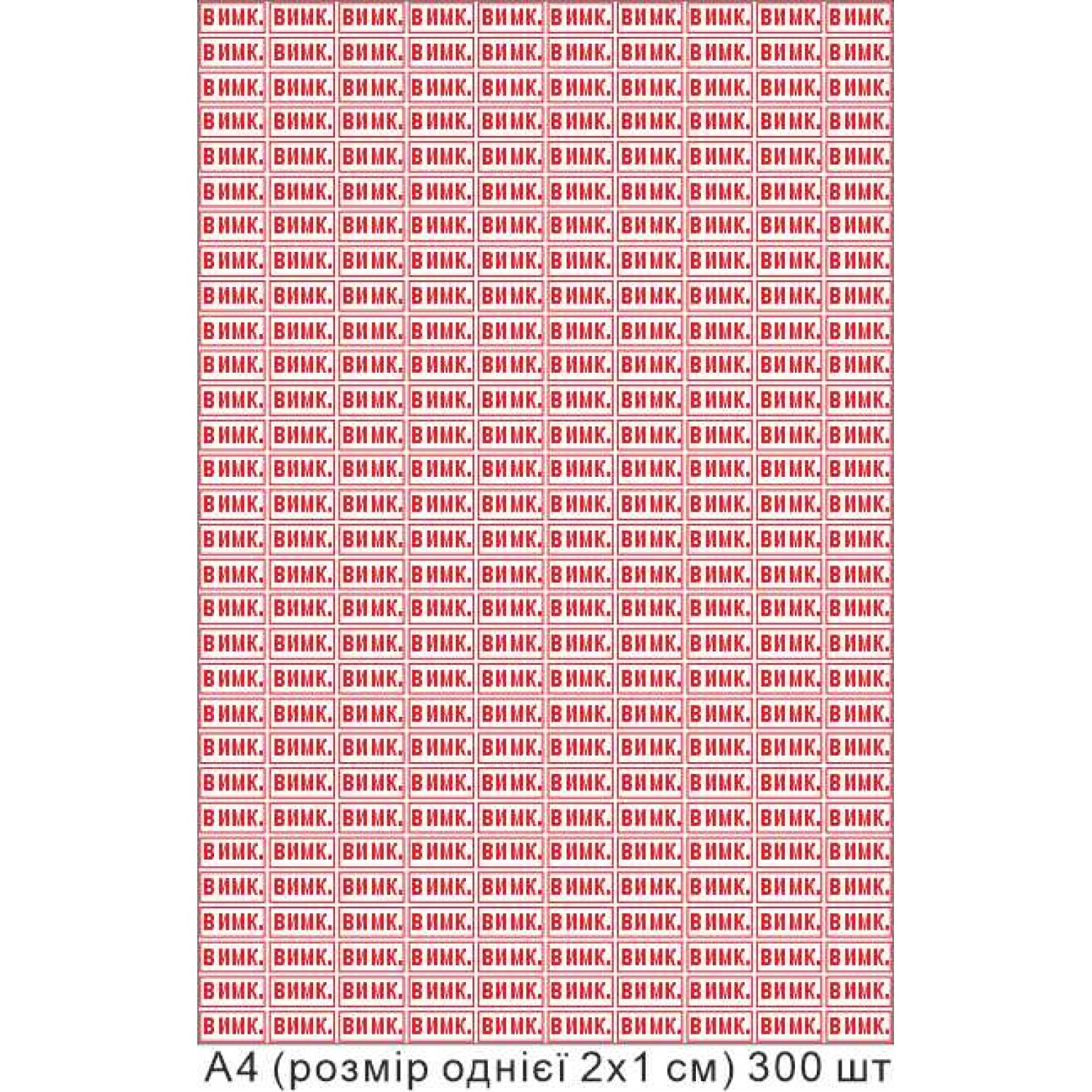 - Набір наклейок на позначення "стану вимикання" А4 20х10 мм 300 штук