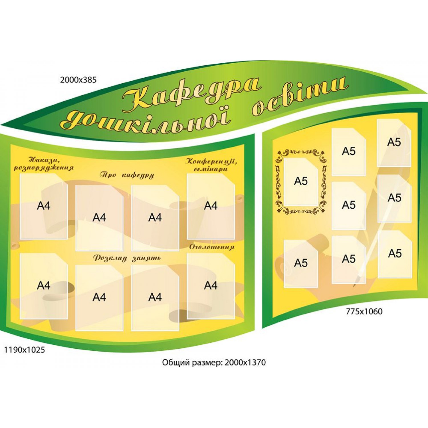 Опис Набір стендів Кафедра дошкільної освіти (зелений)