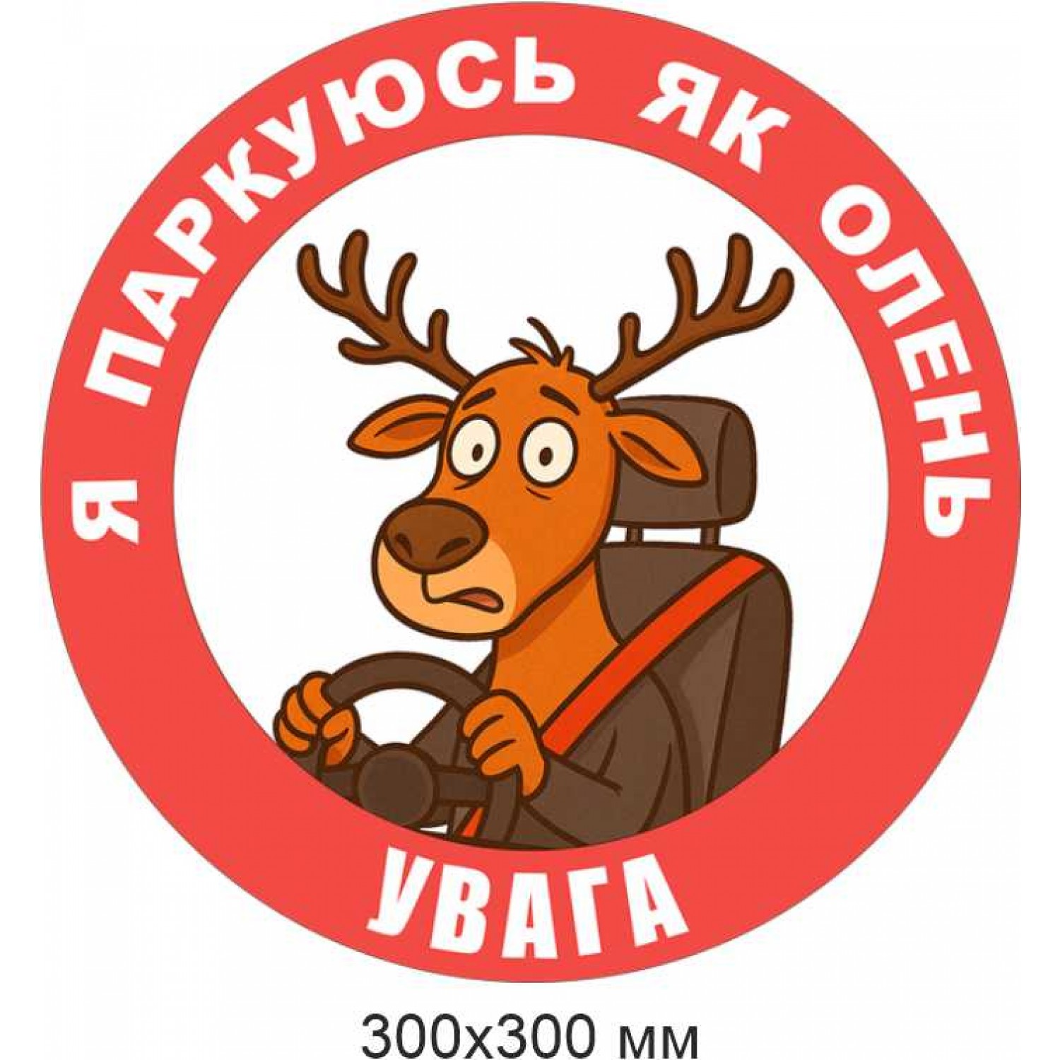 - Наклейка “Я паркуюсь як олень”, 300×300 мм