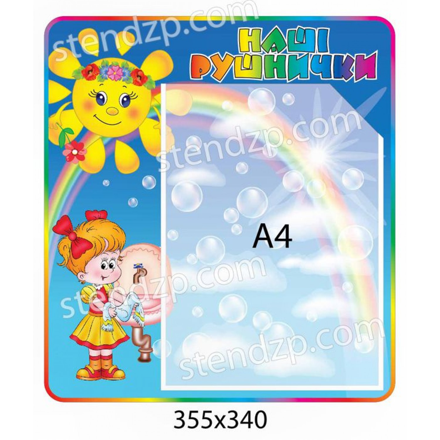 Стенд для списків дітей "Нащі рушнички" обладнаний кишенею А-4 формату.