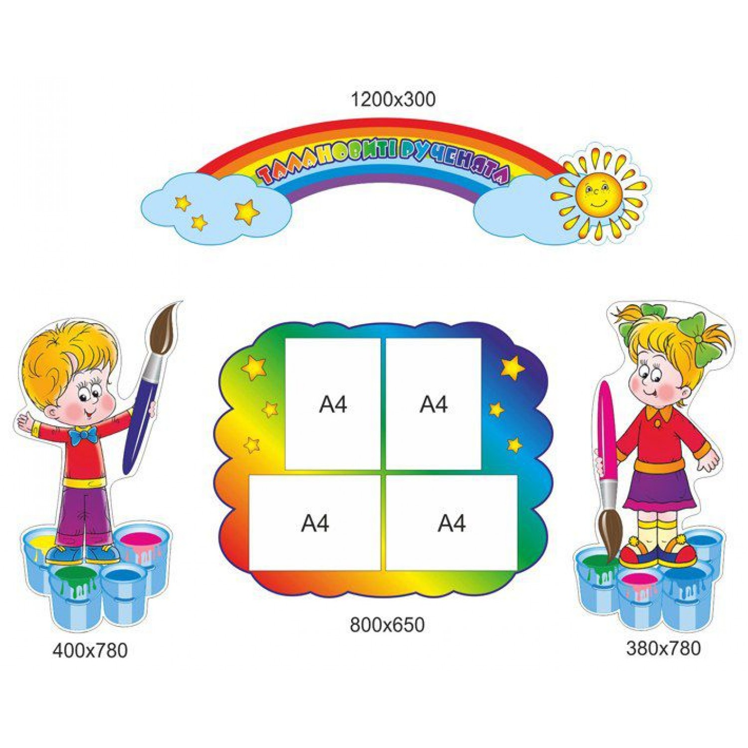 Опис Стенд для виставки дитячих робіт Хлопчик і дівчинка