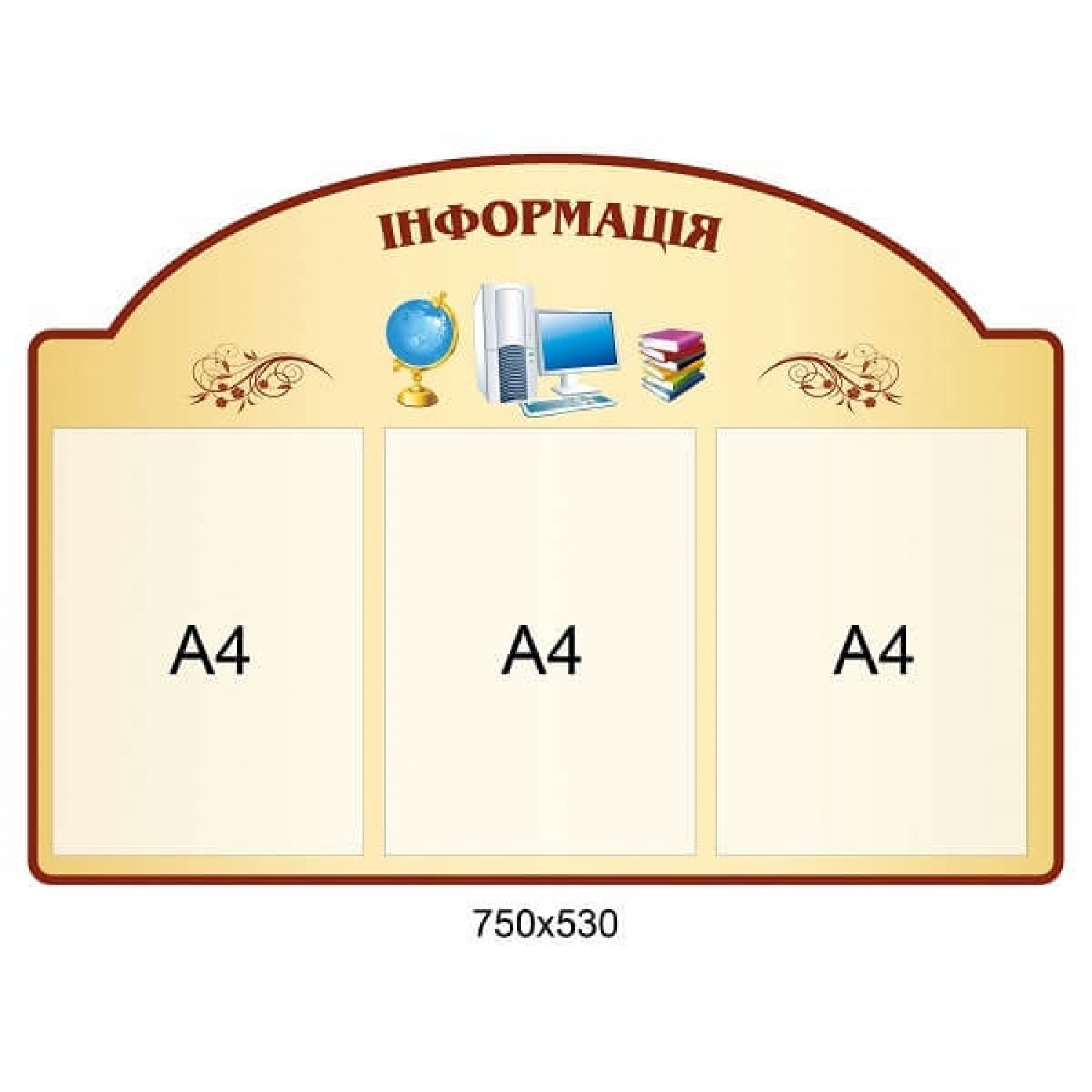 - Стенд фігурний Інформація бежевий фон з вензелями і шкільними картинками