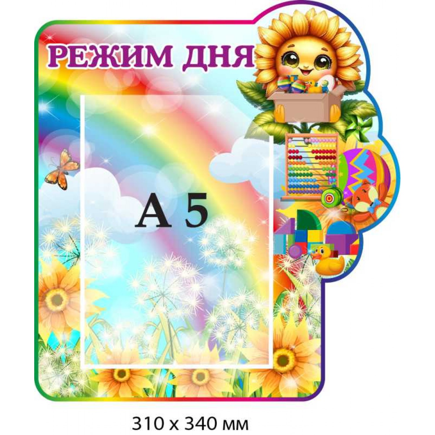 Стенд інформаційний "Режим дня" для дитячого садка із малюнком-соняхом