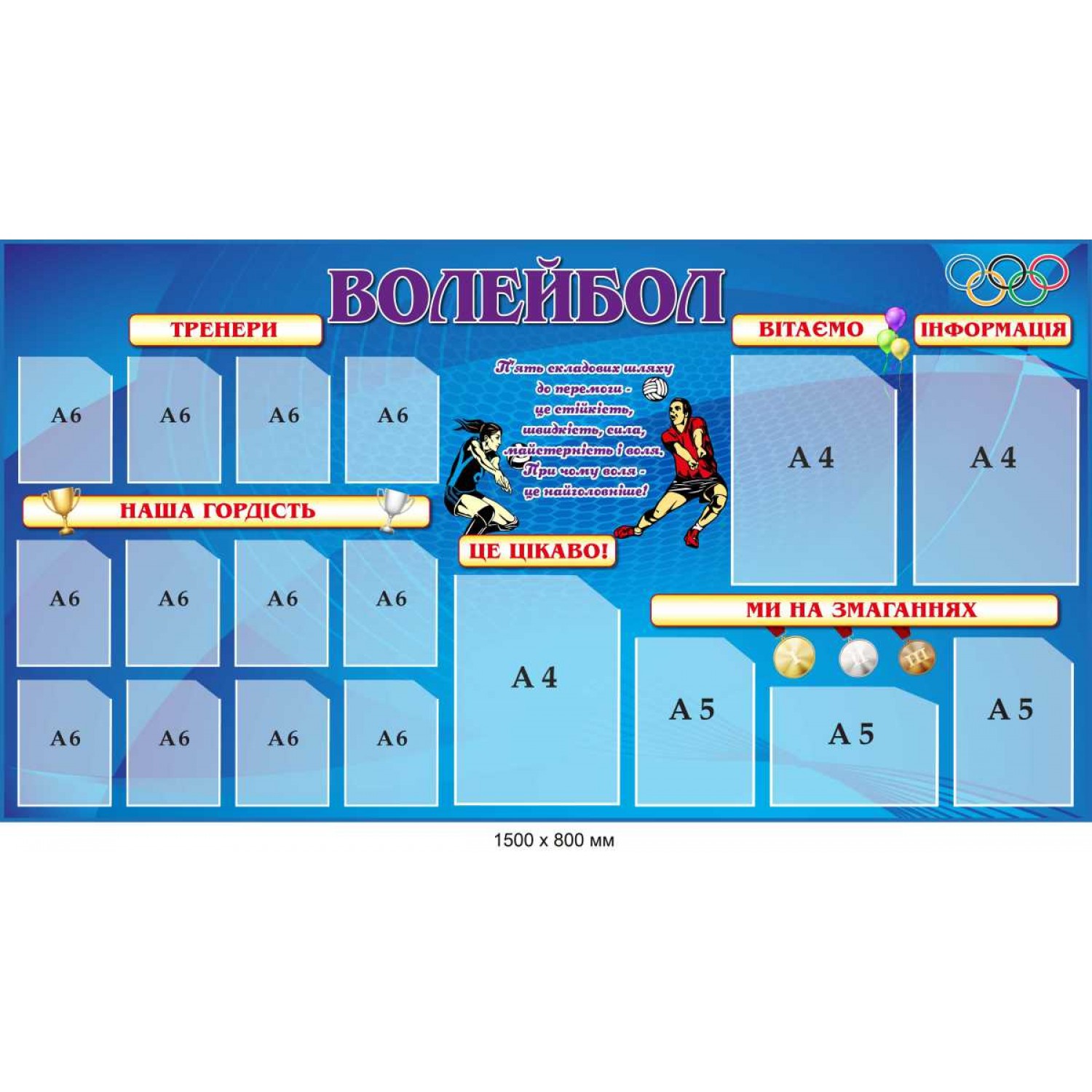 - Стенд інформаційний "Волейбол" 1500х800 мм 18 кишень