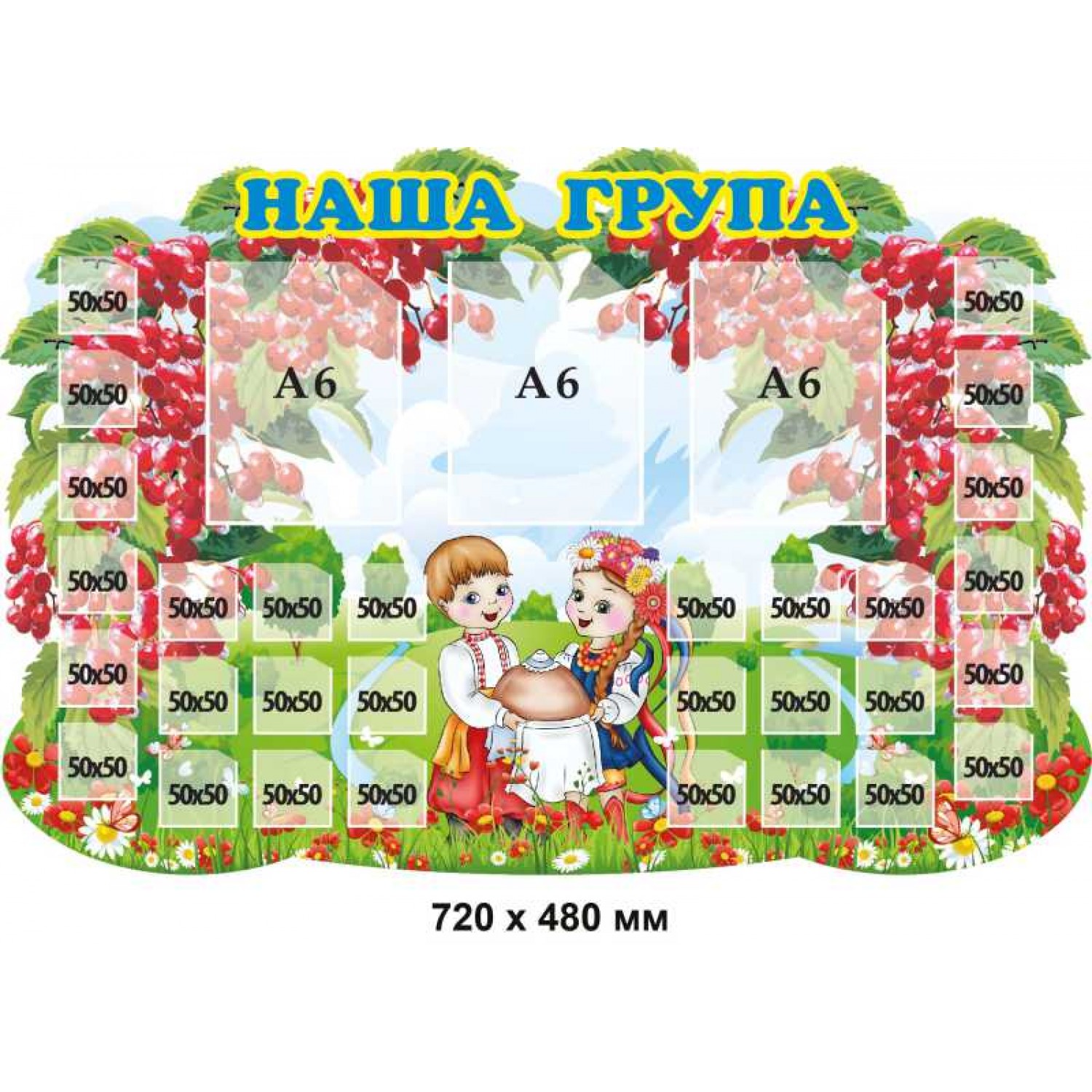 - Стенд з калиною "Наша група" 720х480 мм з кишенями