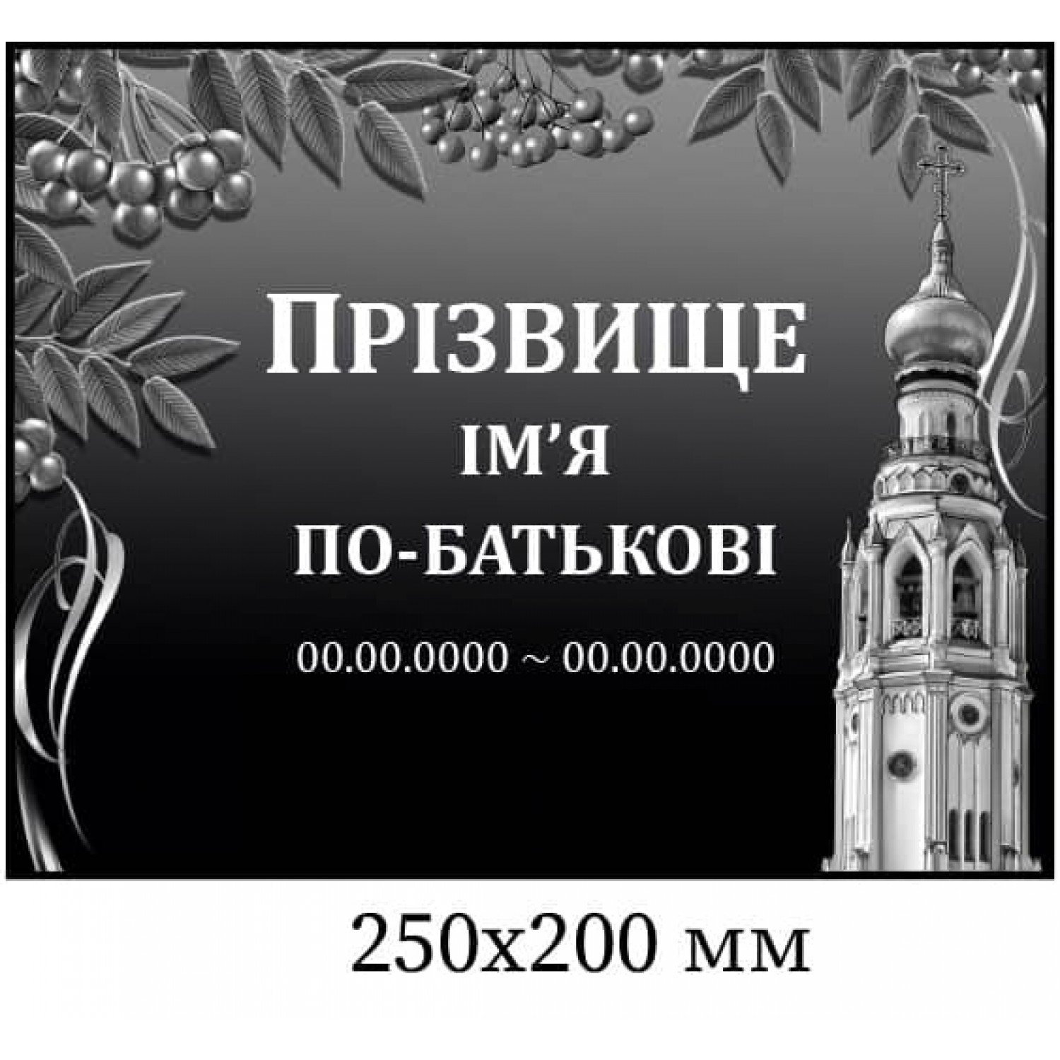 - Табличка ритуальна чорно-біла 250х200 мм