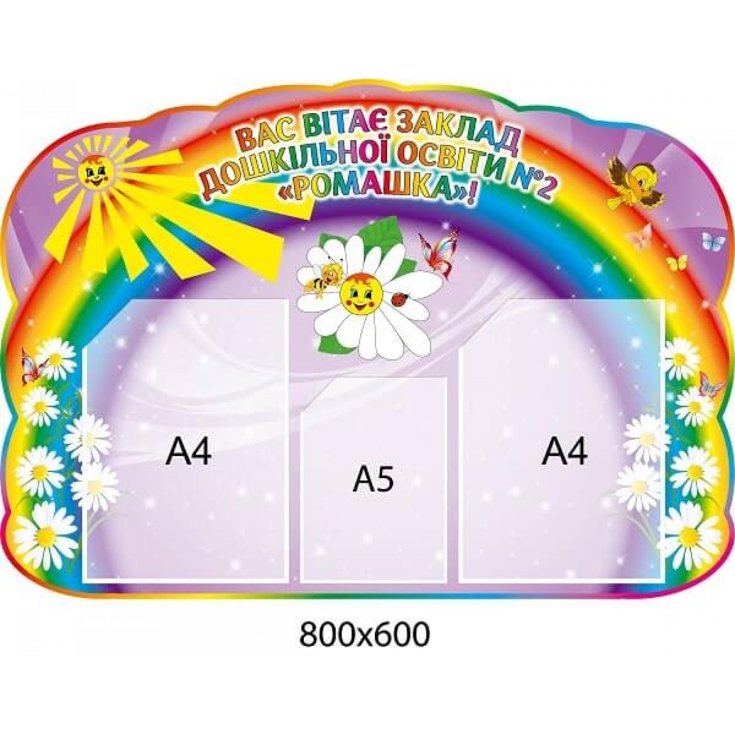 - Візитка дитячого саду "Вас вітає ДНЗ Ромашка" бузковий