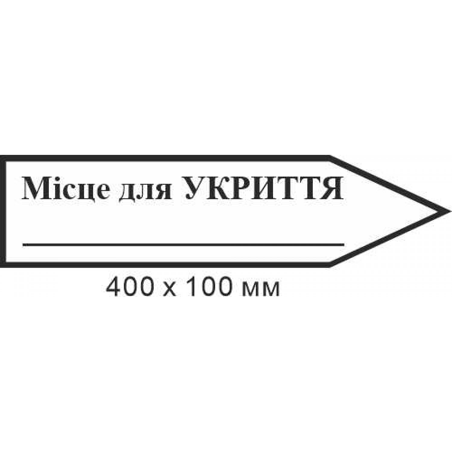 Знак евакуації місце для укриття для напису кількості метрів у формі стрілки праворуч 400х100мм