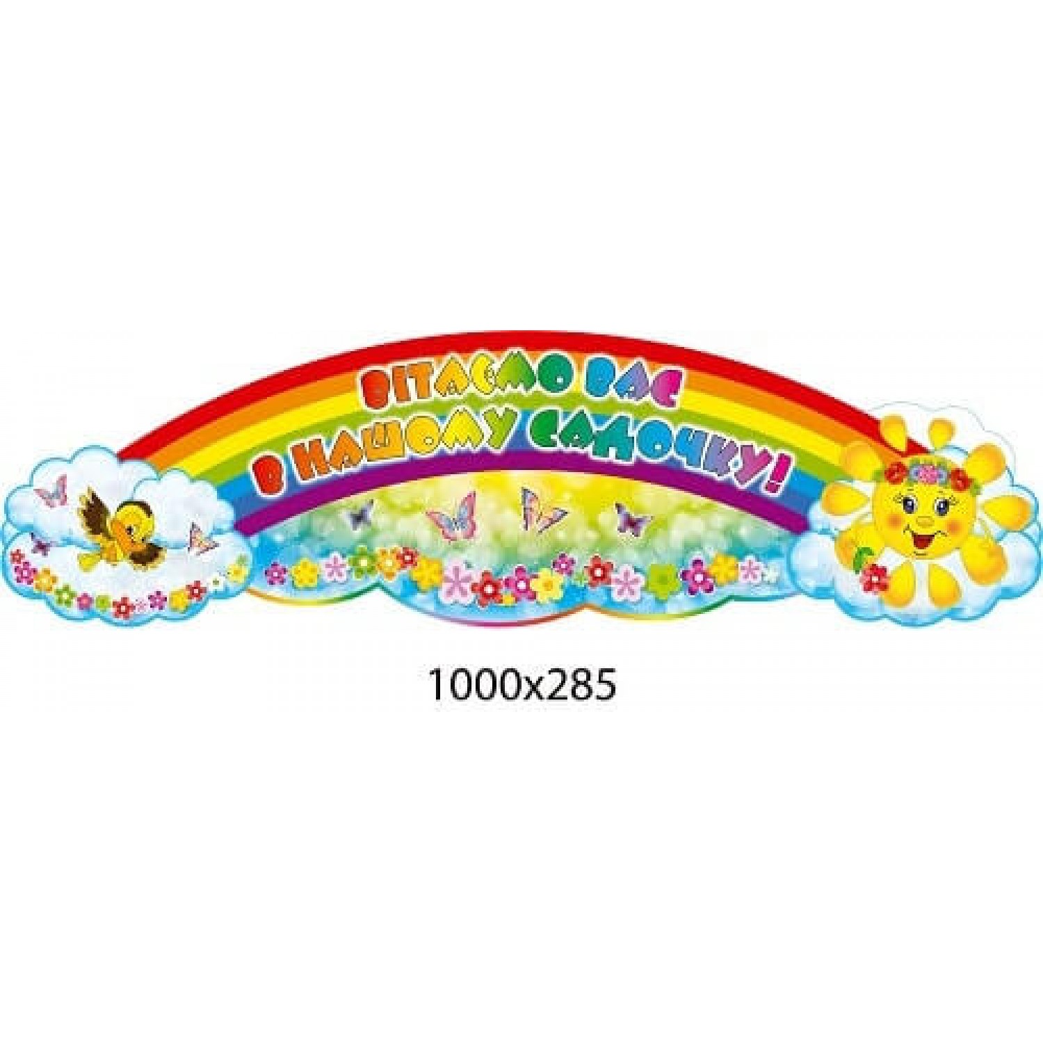 Заголовок Приветствуем Вас в нашем саду (птички, бабочки, солнышко)