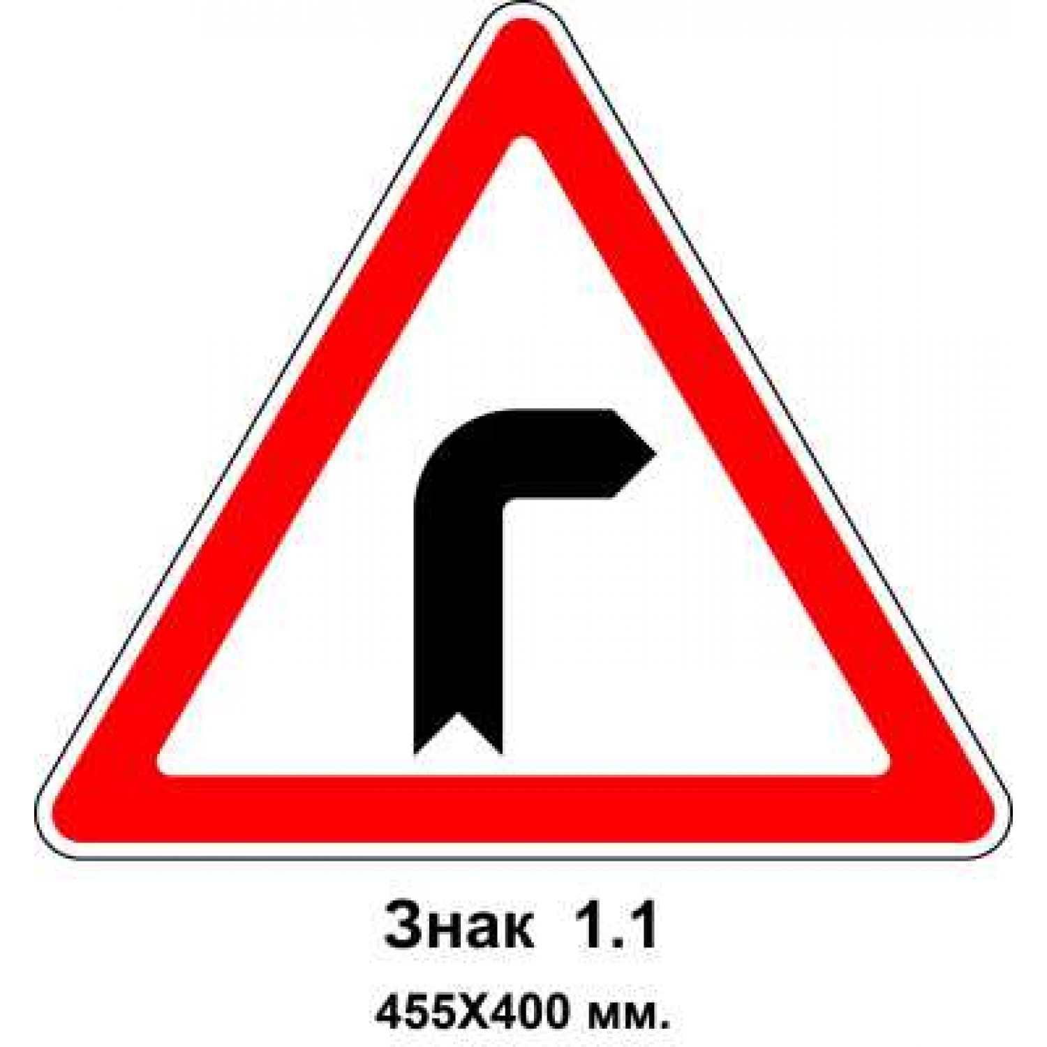 - Знак 1.1 "Опасный поворот направо" 455х400 мм