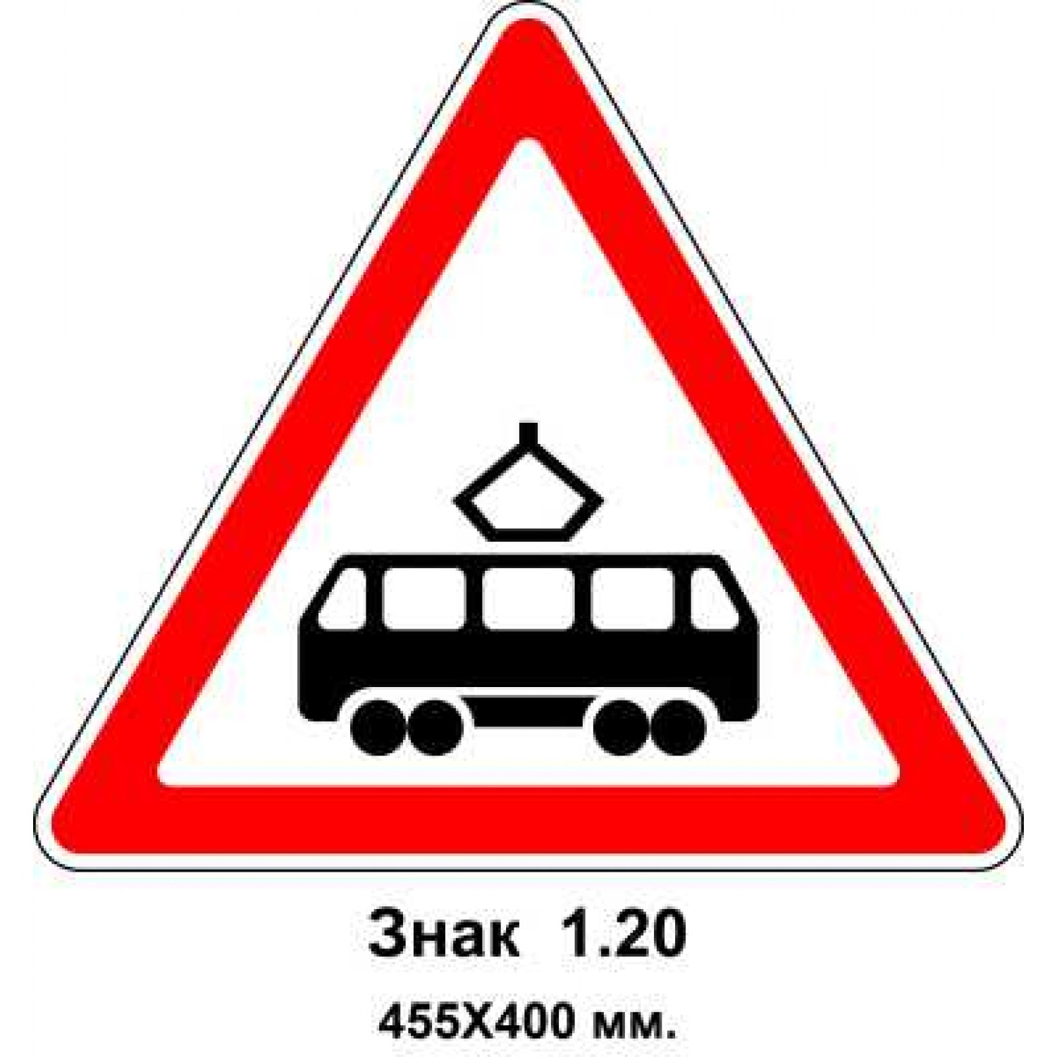 Знак 1.20 "Пересечение с трамвайными путями" 455х400 мм