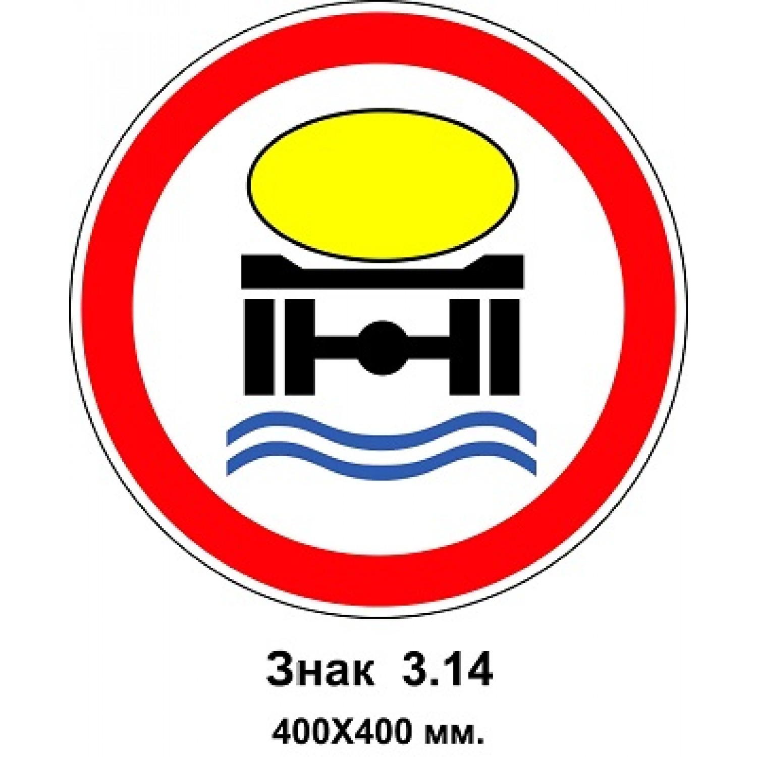 - Знак 3.14 "Движение транспортных средств, перевозящих загрязняющие воду вещества, запрещено" 400х400 мм