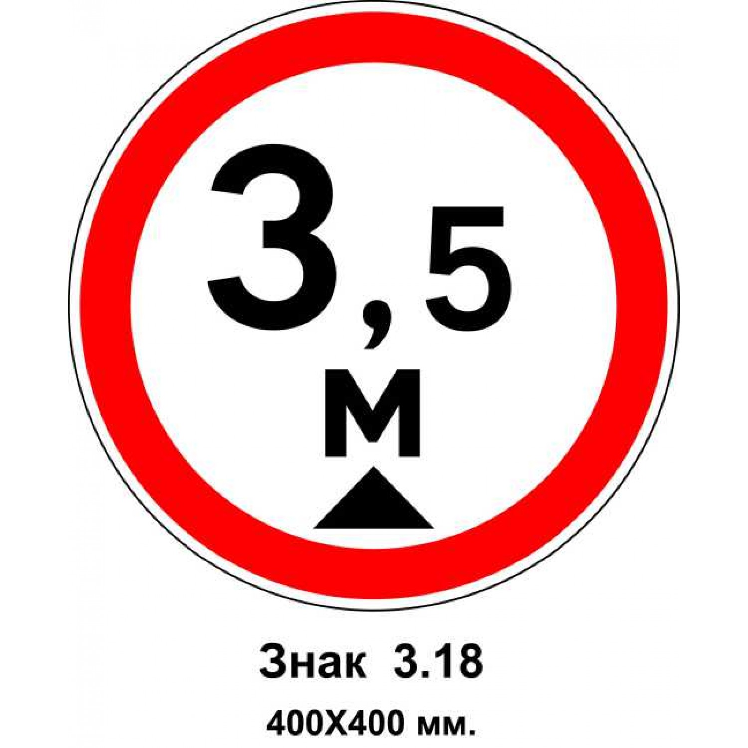 - Знак 3.18. "Движение транспортных средств, высота которых превышает 3,5 м, запрещено" 400х400 мм