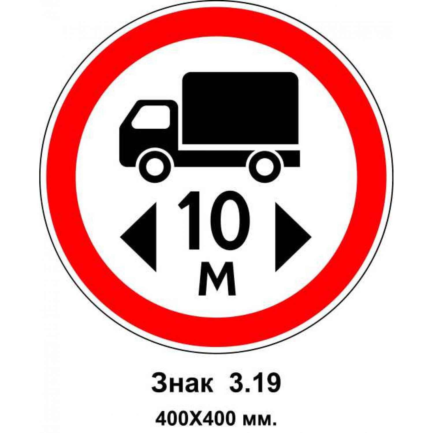 - Знак 3.19 "Движение транспортных средств, длина которых превышает 10 м, запрещено" 400х400 мм