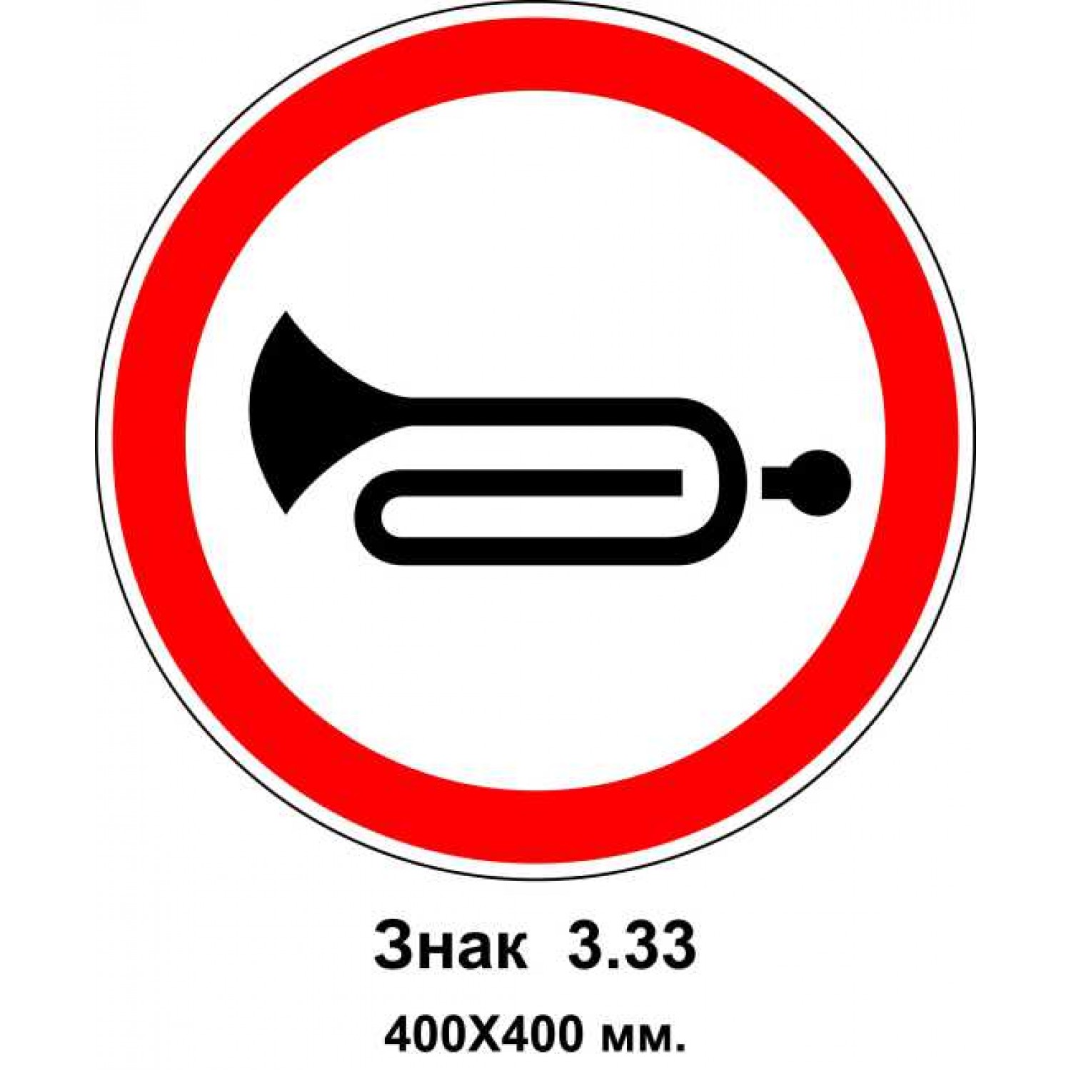 - Знак 3.33 "Подача звукового сигнала запрещена" 400х400 мм
