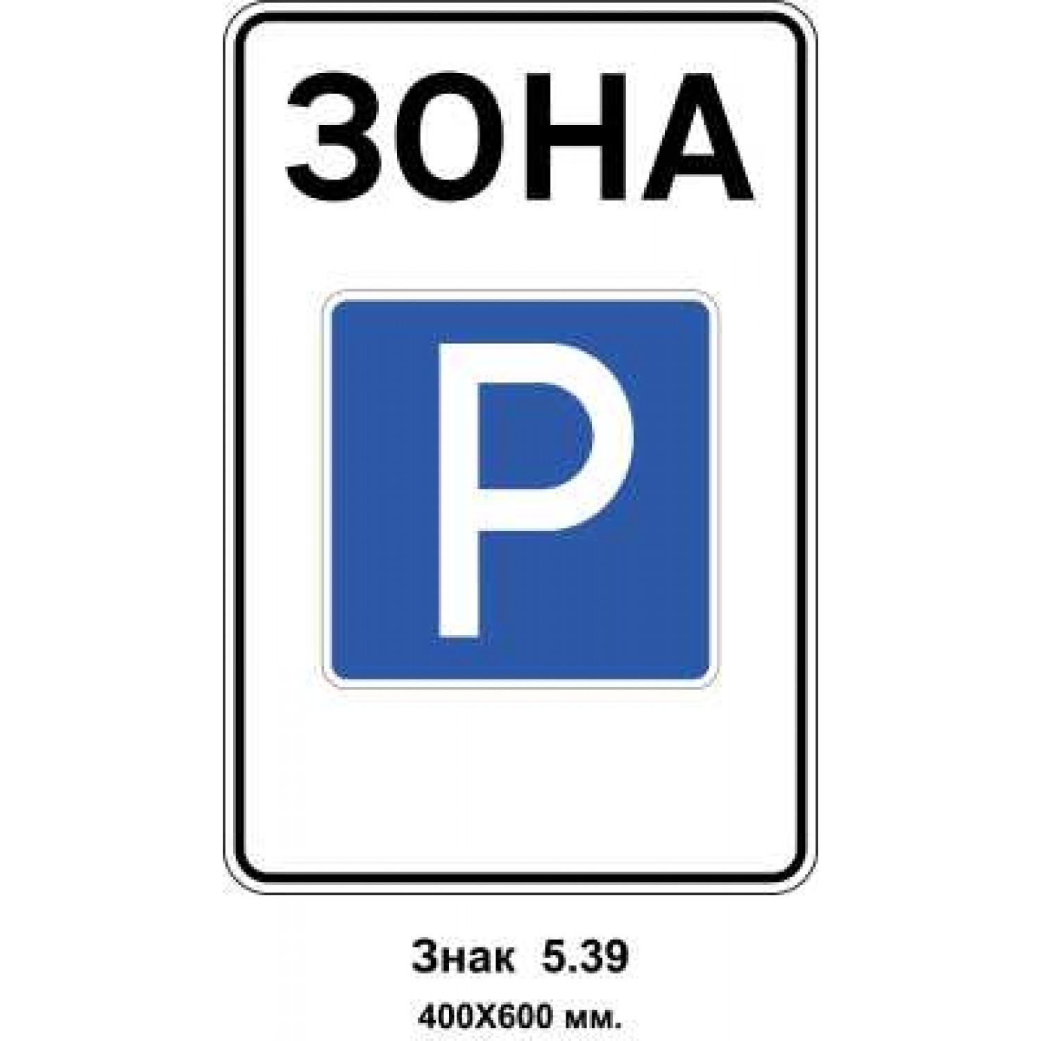 - Знак 5.39 "Зона стоянки" 400х600 мм