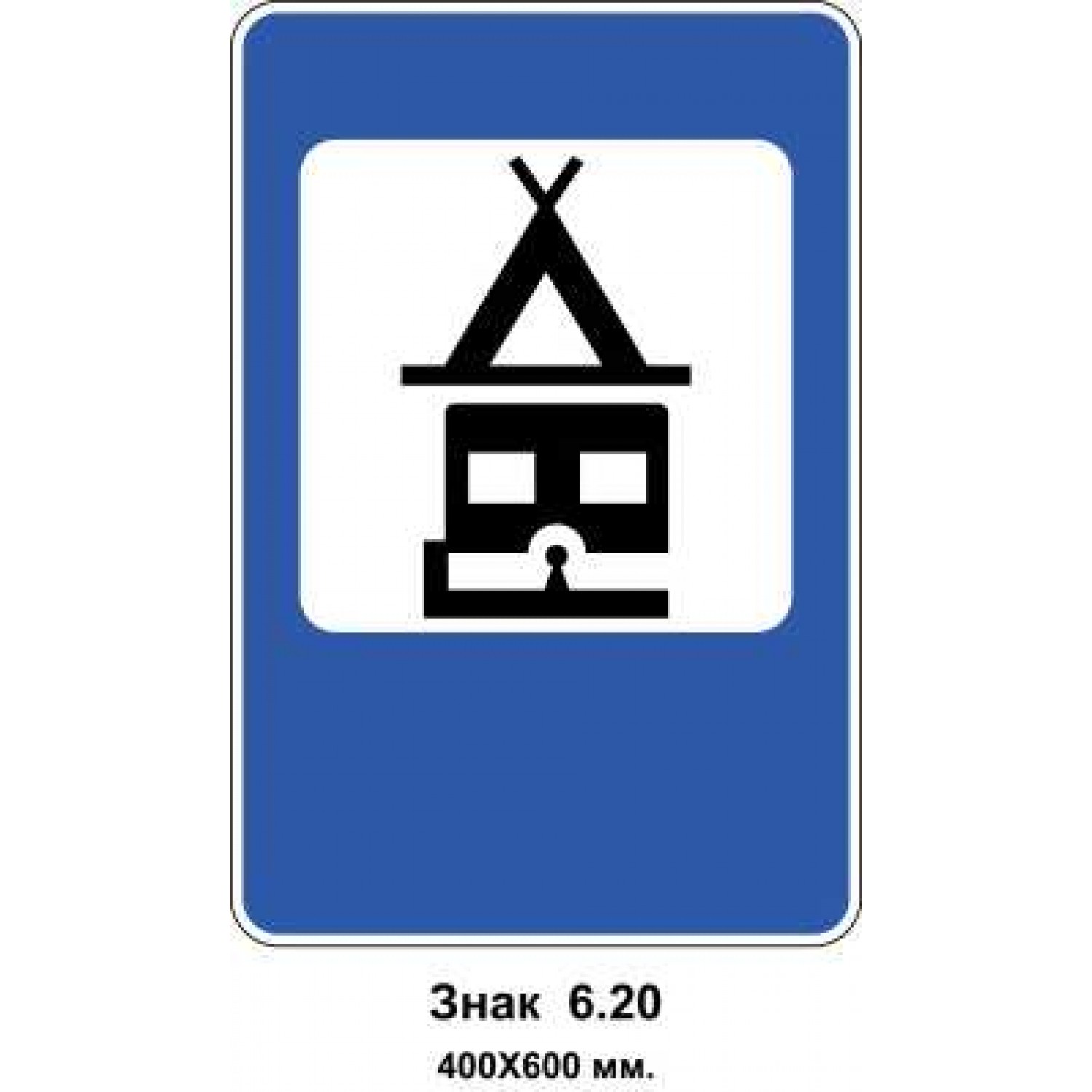 - Знак 6.20 "Участок для лагеря автотуристов и место стоянки прицепов в кемпинге" 400х600 мм
