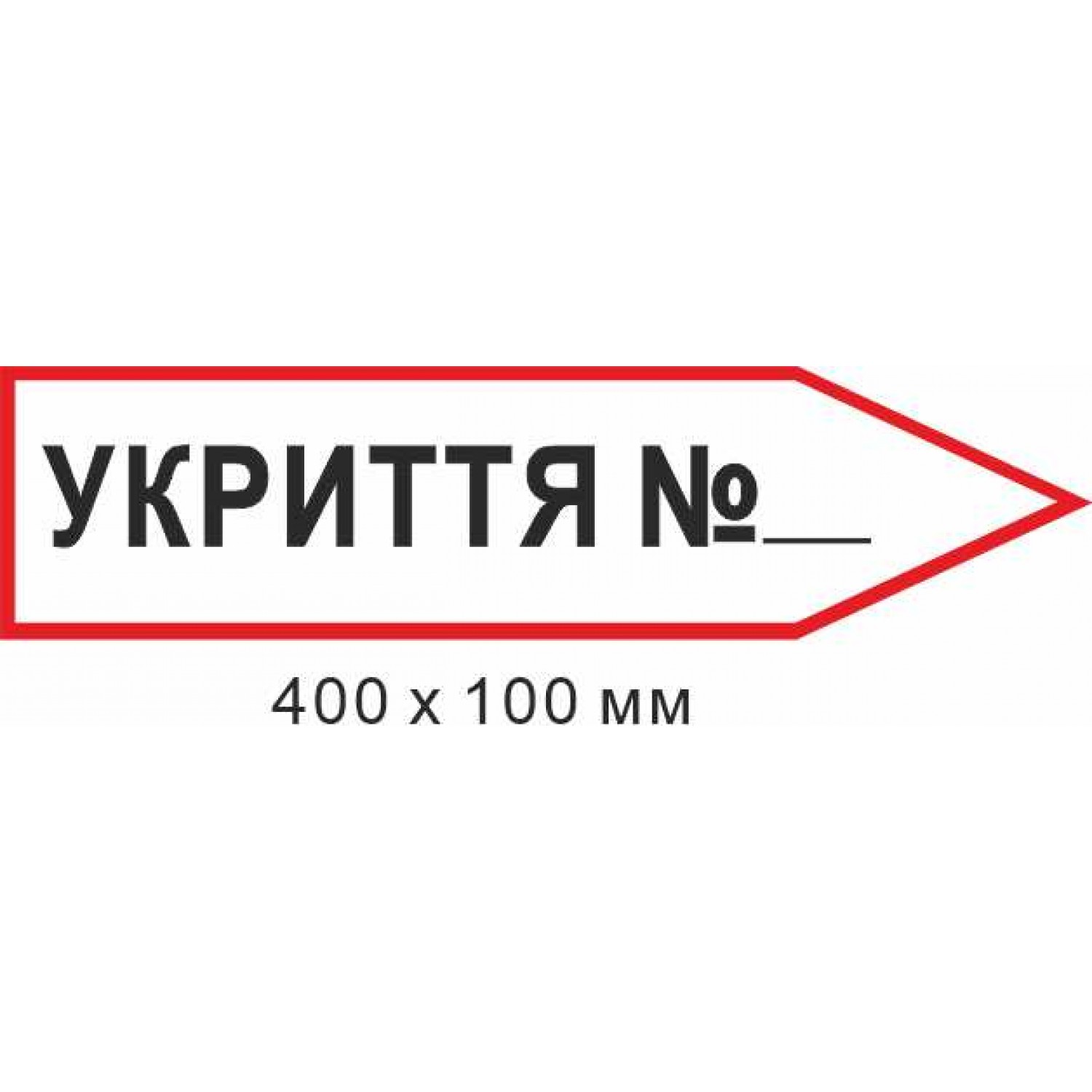- Знак эвакуации укрытия в форме стрелки вправо 400х100мм