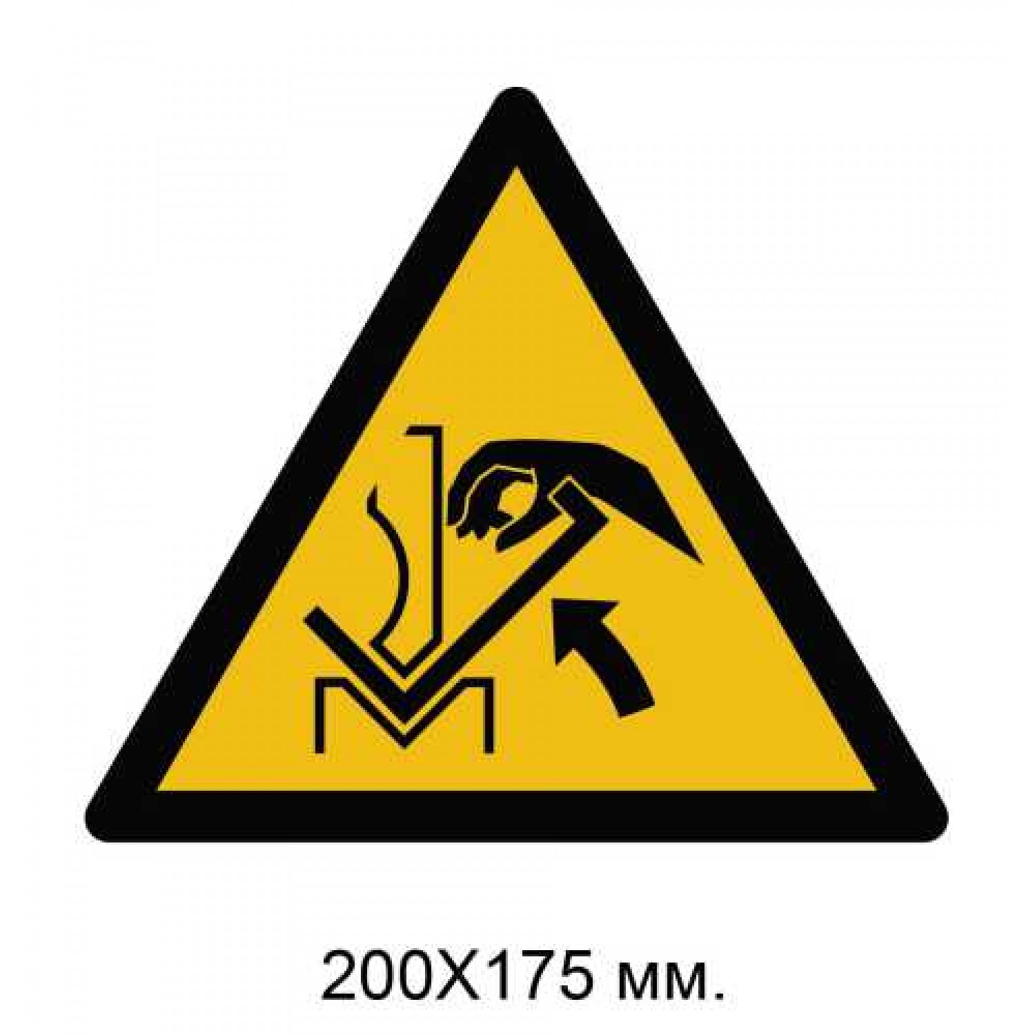 Знак Предупреждение: Повреждение рук между частями листогибочного пресса и материалом 200х175 мм