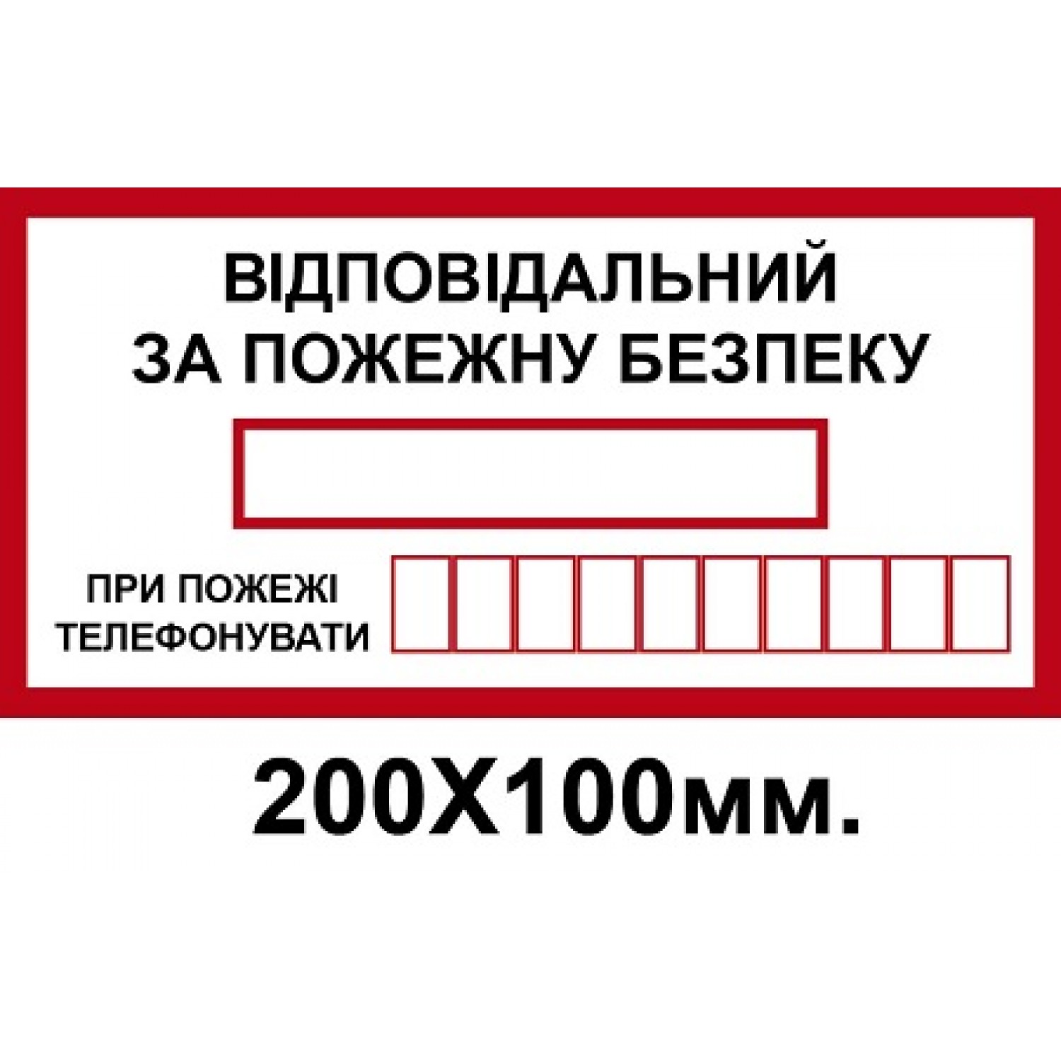- Знак противопожарный 200х100 мм Ответственный за пожарную безопасность с телефоном